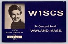 Ruthe Ferguson W1SCS QSL Ham Radio Postcard Wayland MA 1956 K2PQS